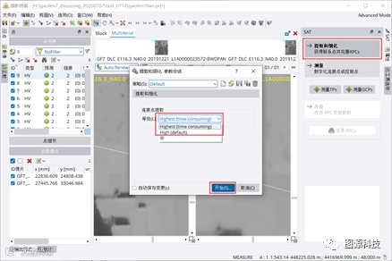 (2)选择“提取和细化”选项,连接点提取等级选择“High”或“Highest”进行空三加密。