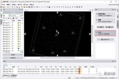(4)检查空三结果是否合格。合格的结果可以进行空三成果导出,到测图软件进行测图。或者进行接下来的DTM生产。