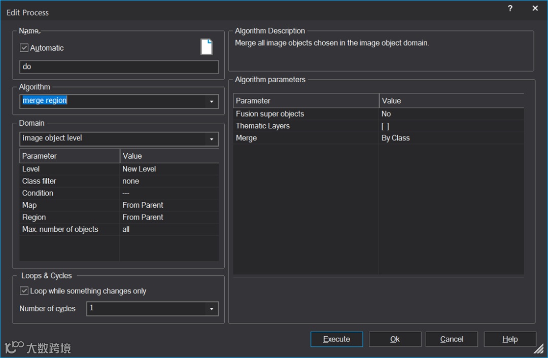 如果需要基于类别合并影像对象,用户不再需要为每个类别添加合并区域算法。现在,v10版本可以简单快速地使用“合并”参数并选择“按类”合并影像对象。