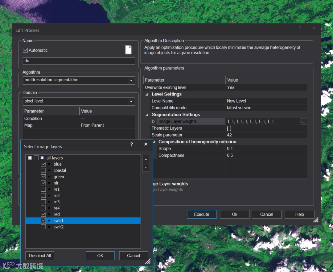 通过全新的选择菜单可以轻松选择输入影像层, 用户可以选择/取消全部影像层或只选择几个影像层