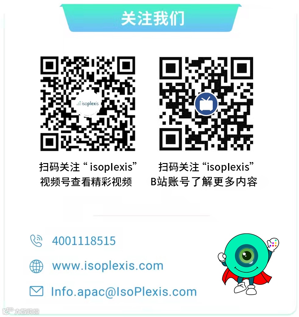 IsoPlexis(NASDAQ: ISO)公司总部位于美国的康涅狄格州,是一家专注于单细胞功能蛋白质组分析解决方案的领先供应商。作为单细胞多组学不可或缺的重要组成部分,IsoPlexis单细胞技术已被国内外用户广泛认可,包括全球顶尖高校科研机构、全球Top 20的制药企业、70%美国综合性癌症中心等,用于疾病发病和耐药性机制研究、药物前期开发、生物工艺优化、预测及评估病人临床疗效和免疫相关不良反应的新型生物标志物,在Cell、Nature Medicine、Immunity、Journal of Clinical Oncology、Cancer Cell等全球知名的高影响力期刊上发表多篇高分文章,并在肿瘤免疫、细胞治疗、肿瘤学、抗感染免疫研究及疫苗开发、自身免疫病、移植免疫等方向取得了众多突破性成果,助力加速医学和生命科学行业发展。