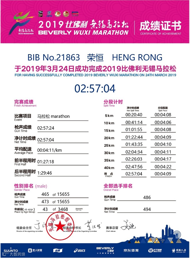 慢慢的,就从小区里面跑,到操场上跑,再到比赛当中跑;从6-7分钟的配速,到5分多的配速,再到4分多的配速,跑到马拉松的赛道上,最后跑进马拉松的3小时。回头看来,跑步这个运动还是非常有魅力,非常有魔力的,坚持下来,你会从中获取到自己想要的东西。