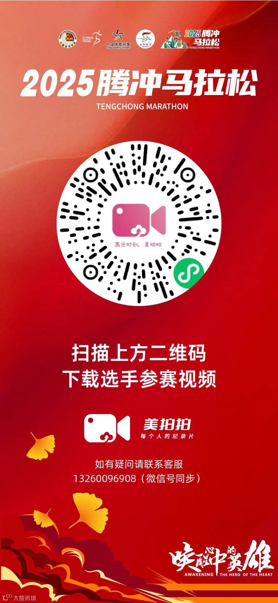 除了沉浸式视频,美拍拍为你定制的腾冲马拉松限定战绩海报,让你的完赛荣耀更具极边质感!只需上传个人照片,即可生成专属海报。