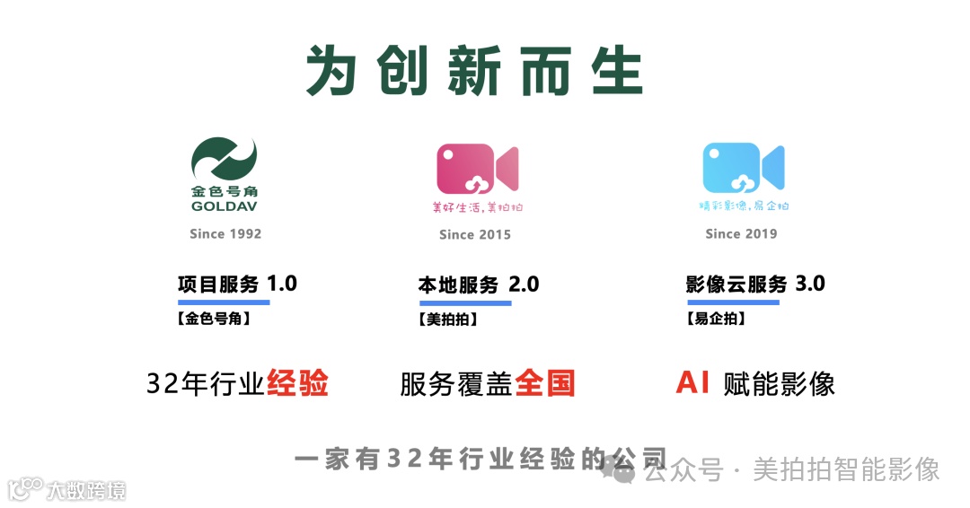 美拍拍(北京)智能科技有限公司创立于2015年,是国内领先的“智能影像”专业服务商。美拍拍的专业拍摄服务覆盖全国每一个通高铁的城市;美拍拍的智能影像SaaS系统,采用高清视频在线实时采集 + 云存储 + 云识别 + 云剪辑的技术。每一个应用场景的视频脚本和数据信息都可以在线灵活定制,方便、灵活、快捷的为每一个活动场景的每一位参与者提供内容丰富、数据完整,赏心悦目的活动纪录片。