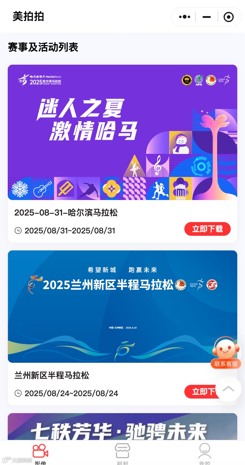 在本篇文章或者视频号(美拍拍智能影像)的最新作品下评论区任意留言,并转发其中任意作品。我们会在评论中随机抽取 50 名用户,分别赠送往期赛事视频兑换码和2025.8月最新哈尔滨马拉松,兰州新区半马视频兑换码(二选一)。(各 40 名)。