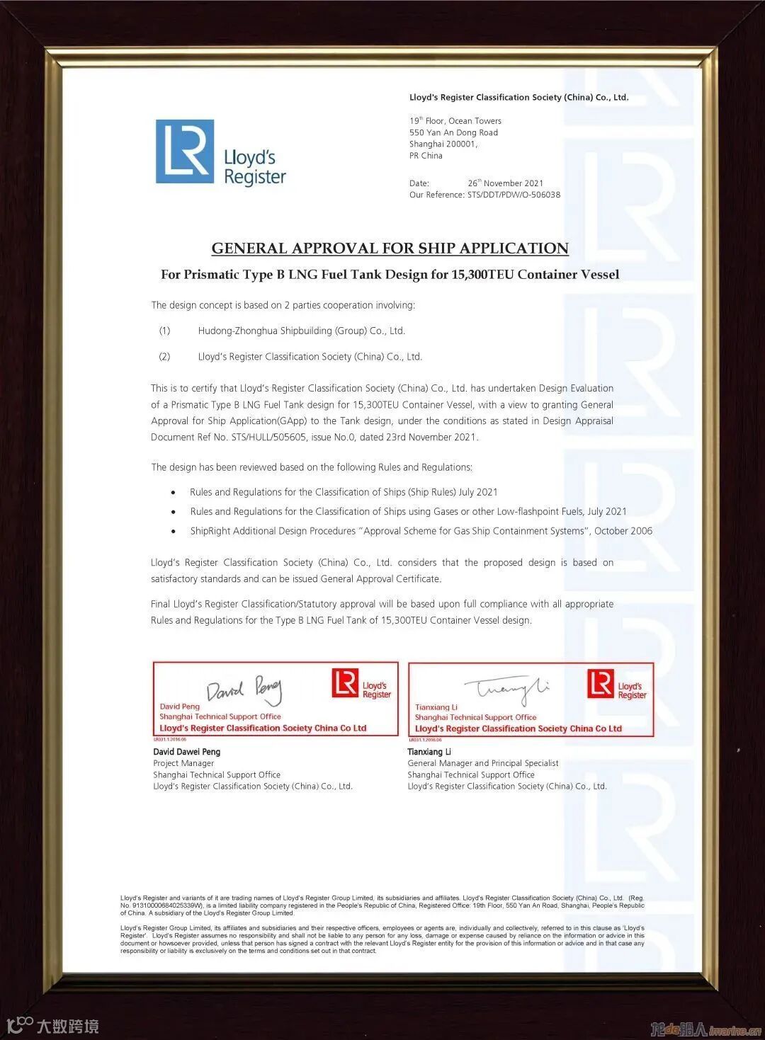 近日,沪东中华自主研发设计的B型LNG舱获得LR船级社颁发的GASA(装船准入)证书。