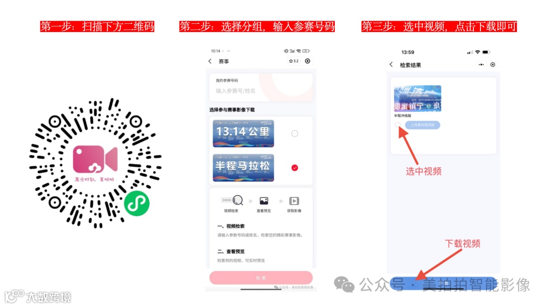 美拍拍智能影像,通过智能采集、智能识别、智能脚本、智能剪辑等一体化的AI技术,服务于大型马拉松、越野赛、团队接力赛、足球&篮球场地赛,以及企业及中小学生运动会等场景,致力于为每位参赛选手打造个人专属的赛事活动纪录片。