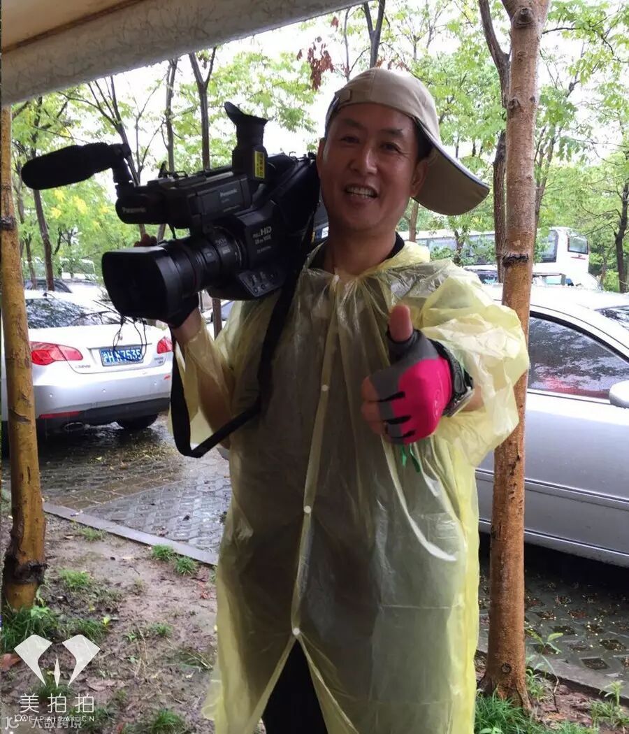 虽然身着简陋的雨衣,但是如果是设备需要,淋着自己也不能淋到器材!