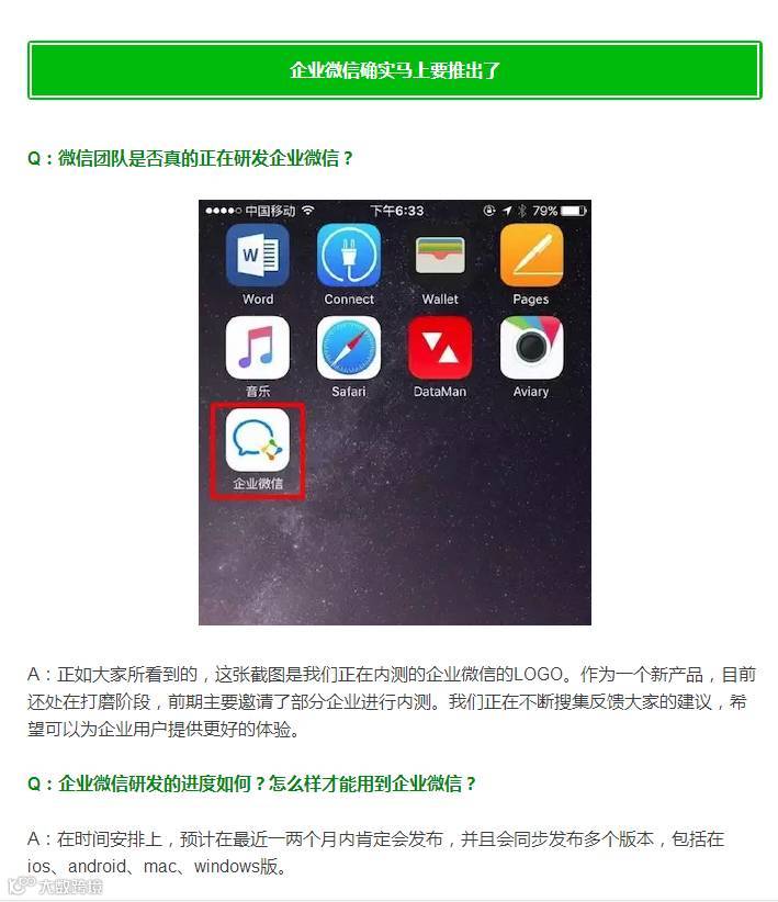 那么,企业微信是否真的要推出?就在昨天,我们得到了微信团队官方切实的消息。