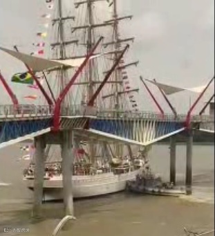 据当地媒体报道,周一下午,巴西海军训练舰白天鹅号(Cisne Branco)在瓜亚基尔的瓜亚斯河过境时,失去动力并撞上了 Isla Santay 大桥,这是一座连接该岛和瓜亚基尔市区的人行桥。