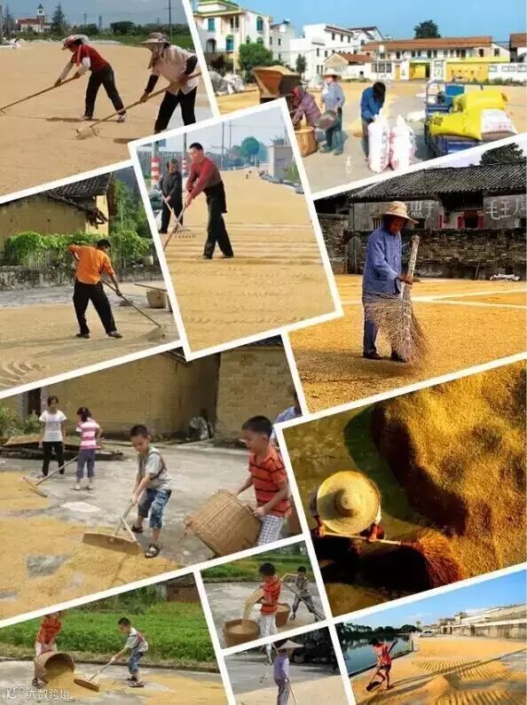 当打完稻谷后,就要用专门的耙将其铺开,并翻来覆去的晒。光着脚丫踩在稻谷上,来回踢来踢去,胜似做一次足底按摩。那个时候晒得一身黝黑。