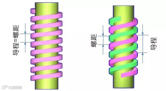 单线螺纹时,导程=螺距;多线螺纹时,导程=螺距×线数。