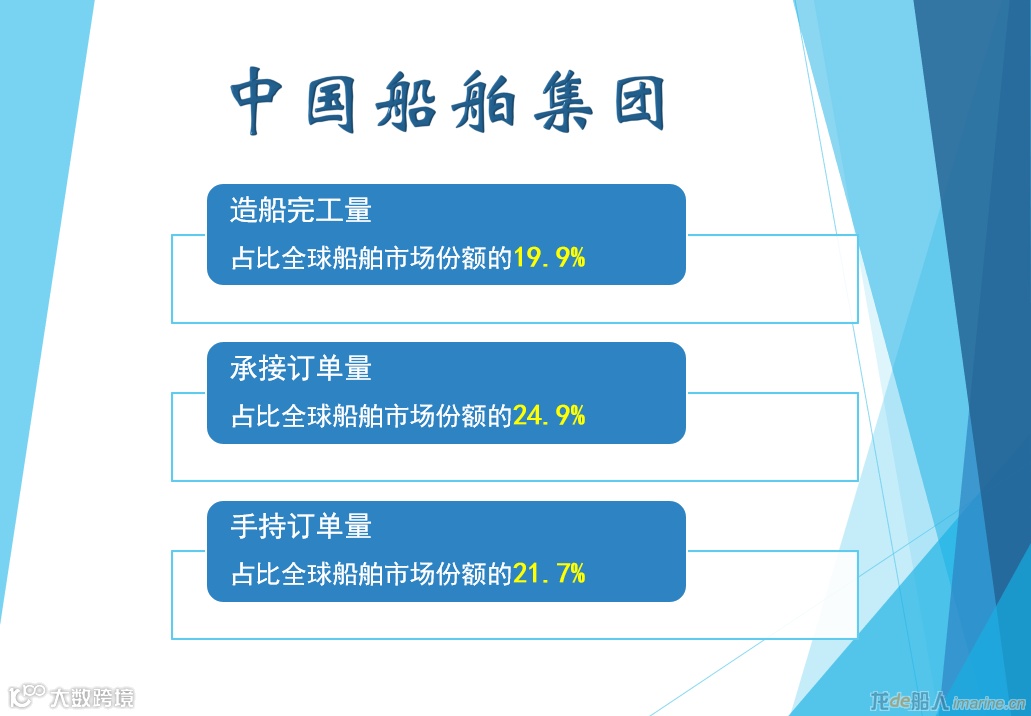 中国船舶表示,截至2021年8月,中国船舶集团三大造船指标均保持世界领先水平,造船完工量、承接订单量、手持订单量以载重吨计,分别占比全球船舶市场份额的19.9%、24.9%和21.7%,稳居世界第一大造船集团。