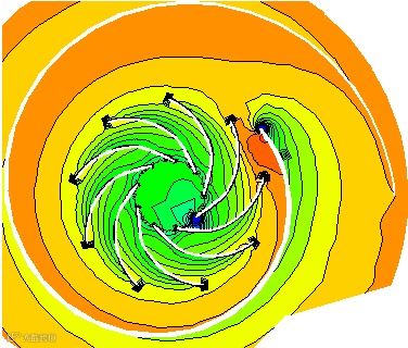 2、当泵的流量小于设计流量时,液体在进口撞击叶片正面,最低压力在叶片进口处靠近前盖板的叶片背面上,如图K2处。