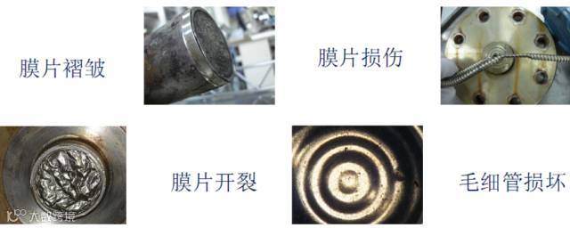| 高温、毛细管灼烧 | 充油气化,损坏膜片 |