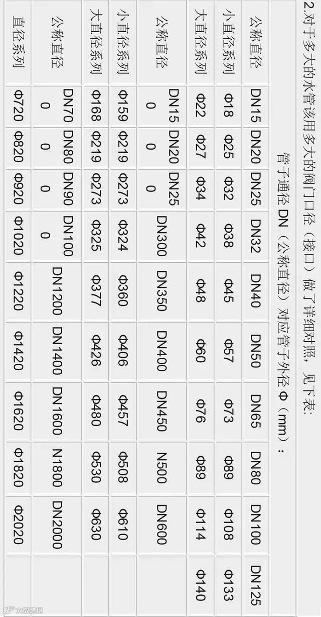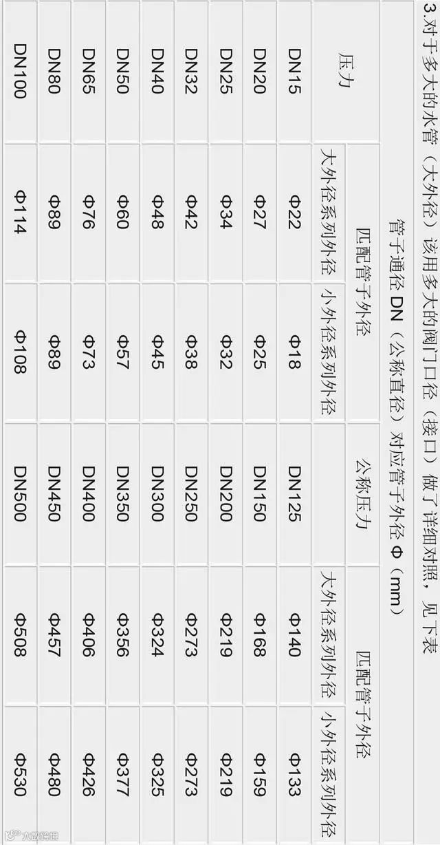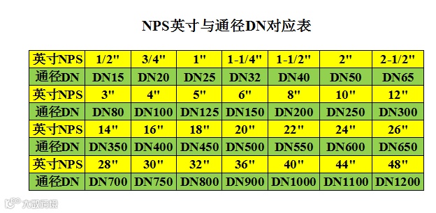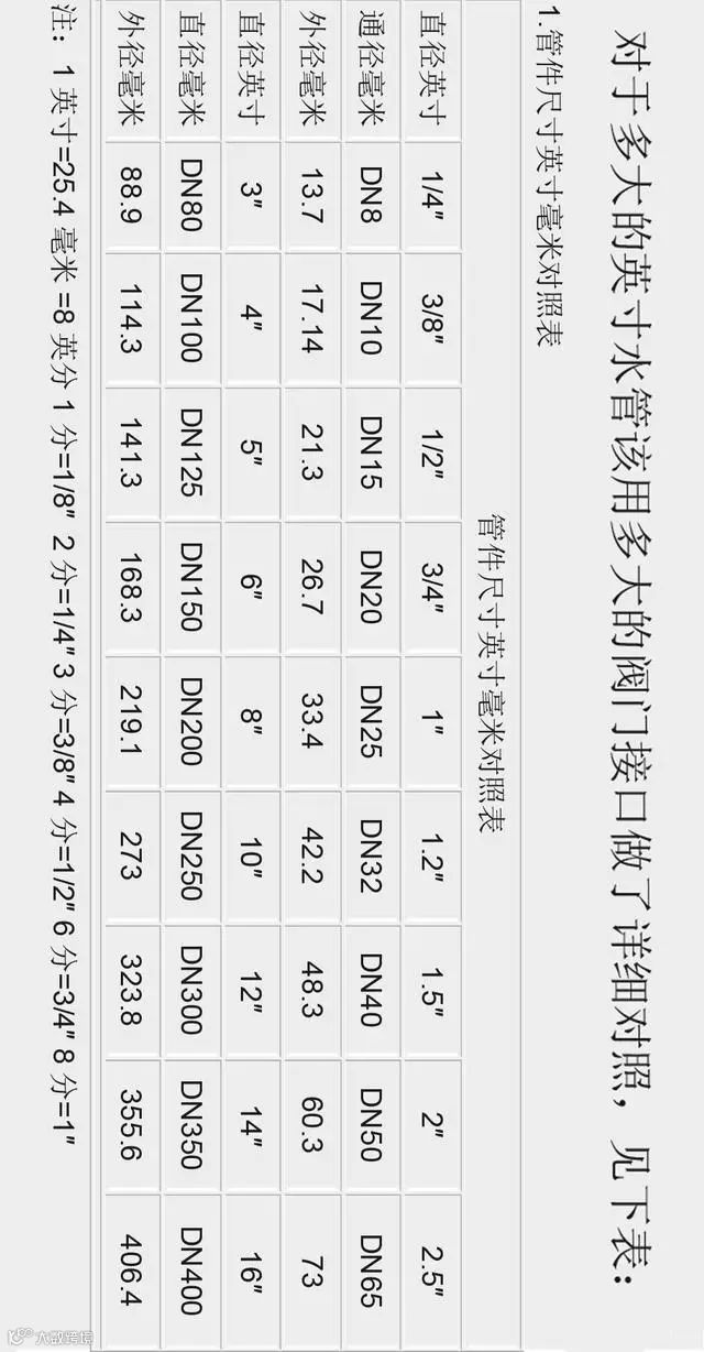 管径与阀门通径的英寸、DN、尺寸对照表