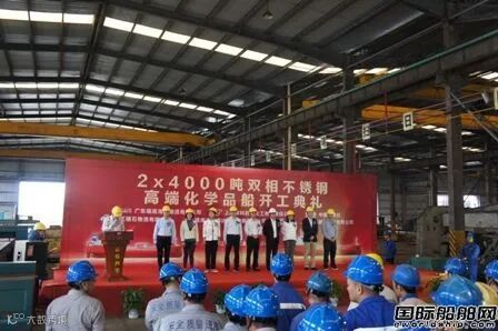 11月18日上午,宁波新乐造船厂举行为广东瑞高海运物流有限公司建造的2艘4000吨不锈钢化学品船开工仪式。