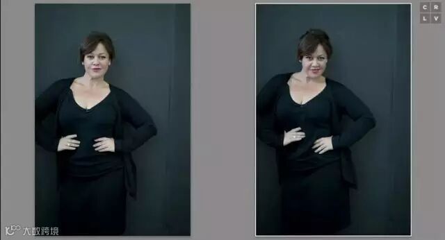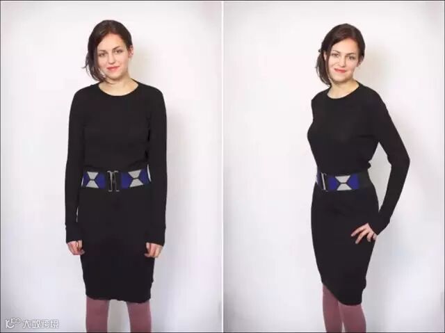 正面对着相机拍照,通常会把人拍胖。这时可以稍一侧身 45 度角面向镜头,再把重心放到后脚上,并且把后面的手臂收在背后,定律是“能曲则曲”。