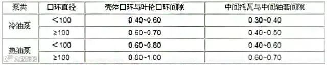 壳体口环与叶轮口环、中间托瓦与中间轴套的直径间隙应符合表要求。