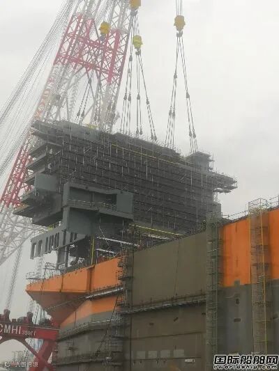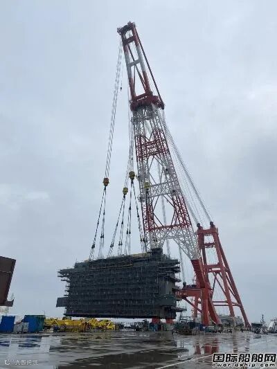 10月5日,招商工业海门基地首艘FPSO项目(CMHI-220MPFA)生活楼整体顺利吊装,这是招商重工史上最大单体分段吊装。