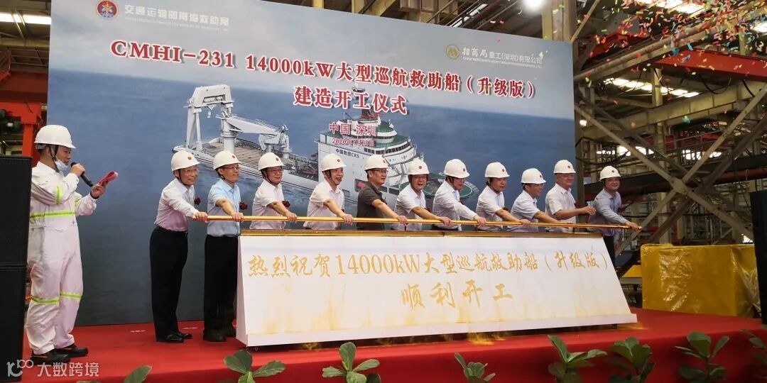 7月28日,由中国船舶集团有限公司旗下上海船舶研究设计院(SDARI)为交通运输部南海救助局研发设计的14000千瓦大型巡航救助船(升级版)开工仪式在招商局孖州岛基地举行。这是中国建造的第一艘升级版大型巡航救助船,将成为我国履行南海水上遇险人员、船舶和航空器搜寻救助,参与全球海上搜救和国际救援行动,配合维护国家海洋权益等职责的新利器。