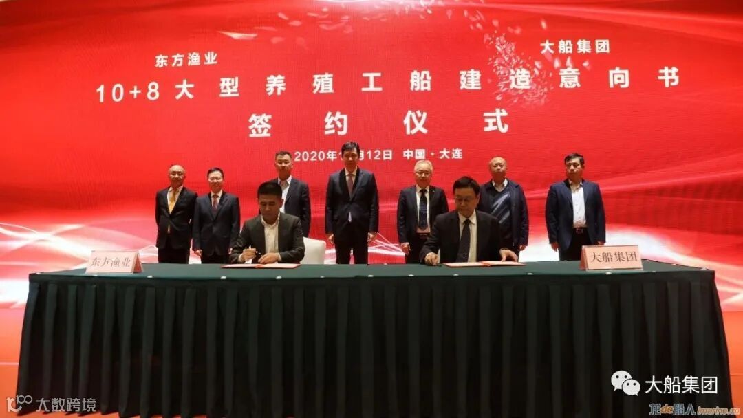 大船集团同东方渔业签署了10+8艘大型养殖工船建造意向协议。