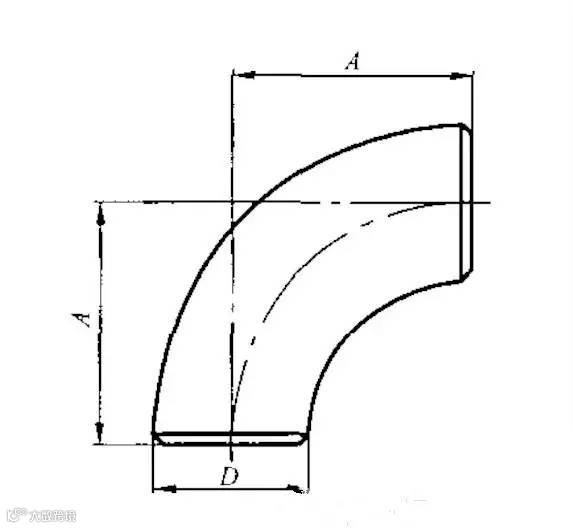 1.5倍弯头中心高A=通径*1.524,其实就是通径D*倍数,将得出的结果的