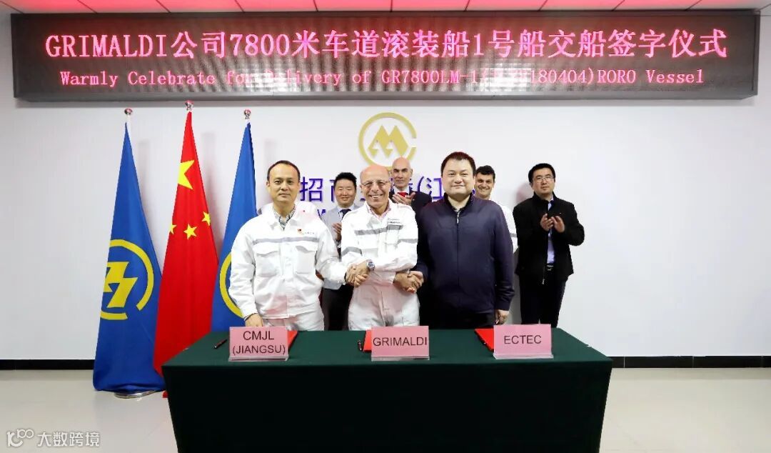 该订单是南京金陵与Grimaldi公司于2018年签订的12艘系列滚装船之一,是一艘极具创新性的GG5G级滚装船,船舶安装了Ecospray直列式开环混合动力型SOx洗涤器,并配备了国际船型首次应用的空气减阻系统和太阳能蓄电池储能系统等多项节能环保装置,真正意义上实现港口停泊时的零排放,是截至目前国内船厂建造的最大、最先进的新一代环境友好型货物滚装船。