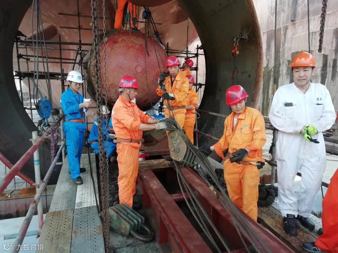 在进行艉轴密封常规保修工作时,意外发现桨毂漏油,经检查是该设备原自带密封件出现漏油,经与国外密封件厂家联系得知采购周期至少需要3个月,这将严重影响该船交付。为了实现按期交船承诺,江南造船在没有详细图纸、参数的情况看下,组织骨干进行化验、分析、测绘,寻找国内供应商,最终将直径超过1.2米的密封圈研制成功,产品性能全面满足技术要求,经过与船东方沟通,确定该密封件由进口转为国产,不仅节约了成本,也为“雪龙”号后续的维修和执行任务提供了备件保障。涂装一部积极探索,在外板抗冰漆表面破损区域采用超高压水进行表面处理,恢复原始钢板粗糙度,并对破损区域周边打磨出坡度,在温湿度可控的情况下进行喷涂,对设备自身不产生腐蚀,对施工环境无二次污染,该工作一次性通过船方、船东监理、品保部及油漆服务商验收,为后续新造船舶及保修船舶提供了宝贵的借鉴经验,标志着公司在造船行业绿色涂装的探索上又迈进一步。