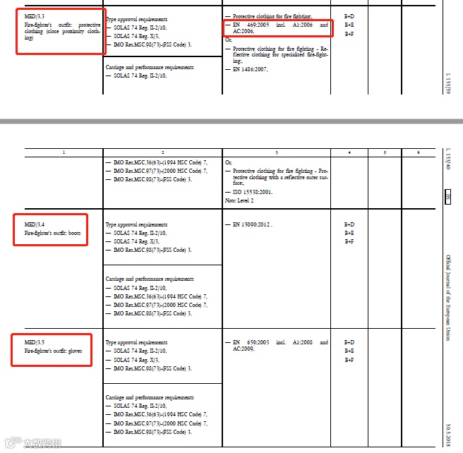 备注:以上是MED关于FFE的相关标准(COMMISSION IMPLEMENTING REGULATION (EU) 2018/773),MED的标志在证书上就是一个舵轮。