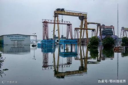 鄂州光大造船厂因江水倒灌,生产车间全部被淹,两条在建船舶也漂在洪水之中,损失严重。