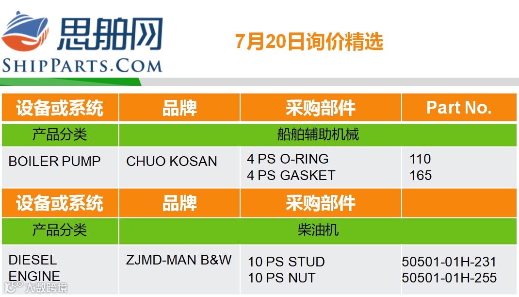 07-20询单精选 |登录ShipParts.com了解更多 思舶