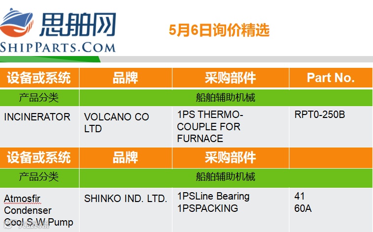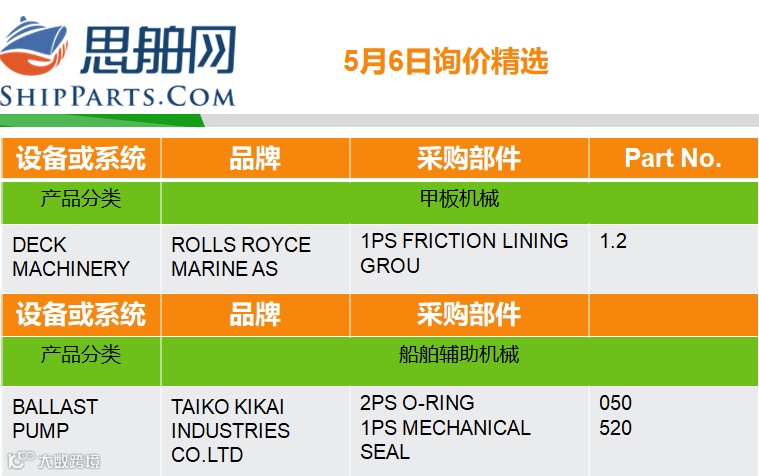 05-01询单精选 |登录ShipParts.com了解更多 思舶