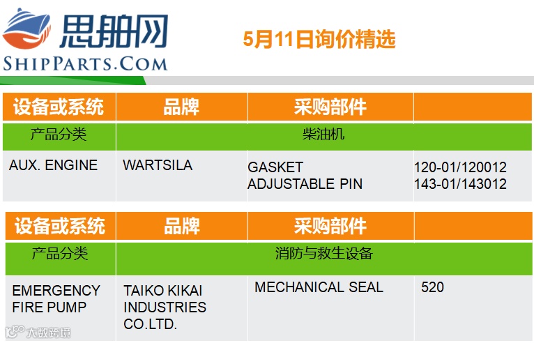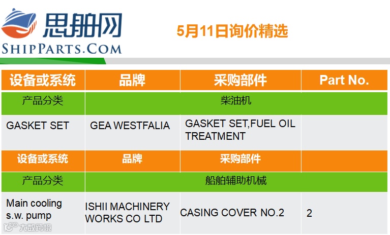 05-11询单精选 |登录ShipParts.com了解更多 思舶