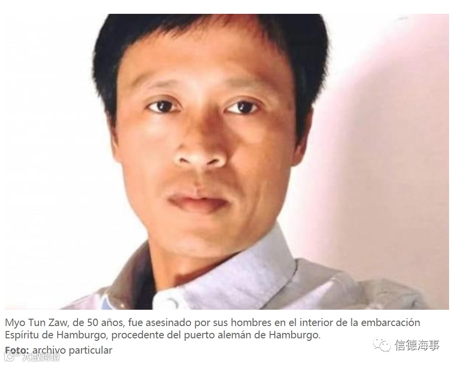 根据当地媒体披露的当地检察官的一份声明显示,受害船长名为Myo Tun Zaw, 50岁。