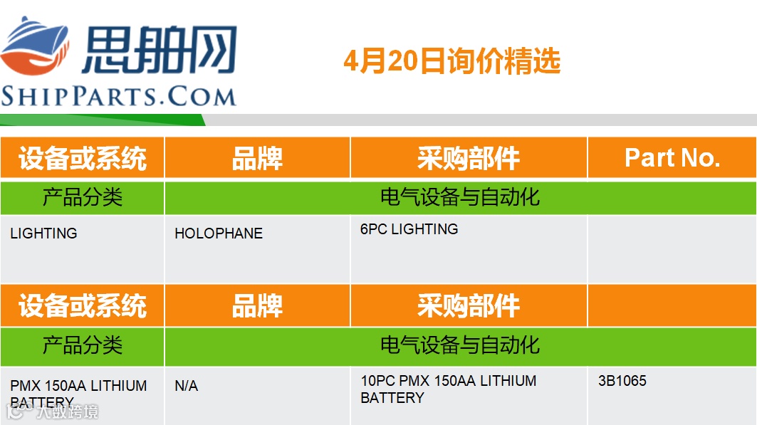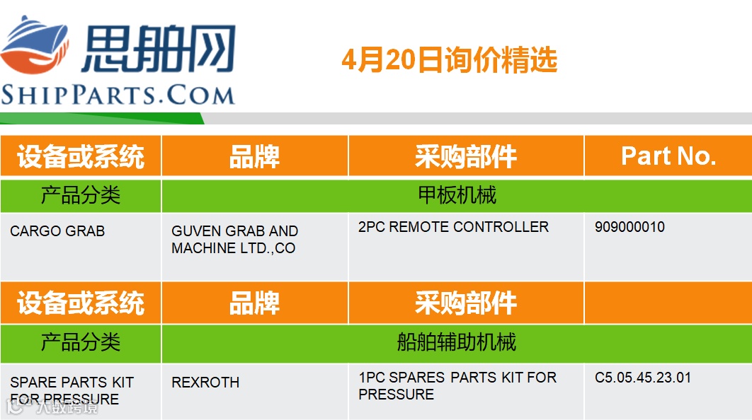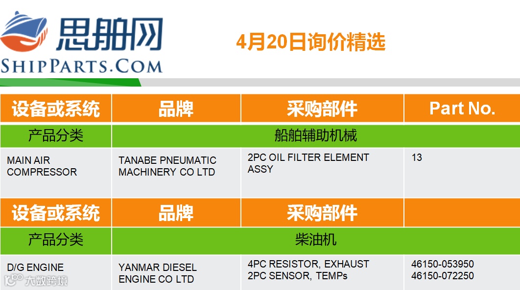 04-20询单精选 |登录ShipParts.com了解更多 思舶