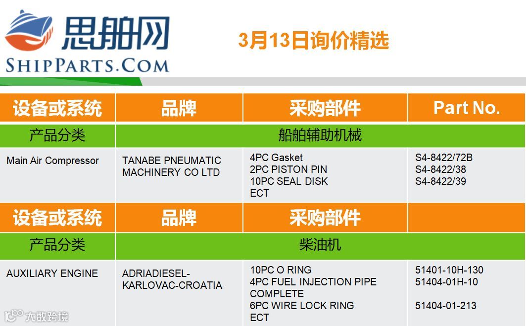 03-13询单精选 |登录ShipParts.com了解更多 思舶