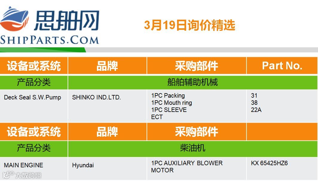 03-19询单精选 |登录ShipParts.com了解更多 思舶