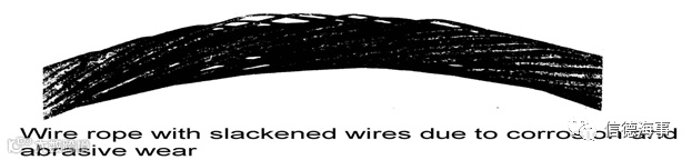 5)Wire rope with slackened wires due to corrosion and abrasive wear 因锈蚀与磨损导致的钢丝松脱