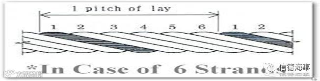 一个捻距是指绳股绕绳芯螺旋一周时所移动的距离,也就是沿着绳芯长度方向上,绳股数所占有的距离,参考下图(以6股钢丝绳为例)