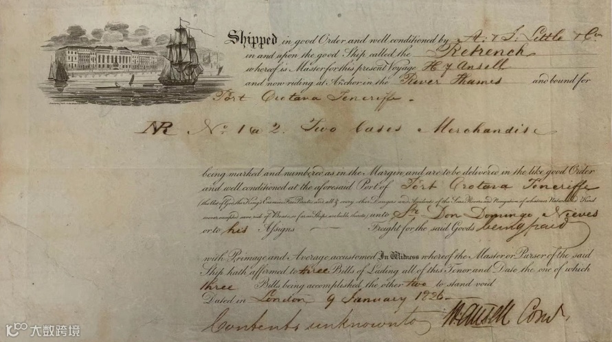 汉字里,单字被提字修饰,指称一份货物运输的文件,其实物和命名的出生证明都不得而知。去年底,博学慷慨的洪宇律师在朋友圈展示了他本人和宇灏律师收集的两份Bills of Lading,一份显示1785年签署于Greenock格林诺克,一份显示1826年签署于London伦敦,为推测该物诞生于欧洲后来流传至东方提供了线索。翻看1890年代的明治商法,会发现其767条船荷证券一节恰与Bill of Lading对应,可见日本是按其原意理解并把这一概念写进了法律。回译英语,船荷证券要比提单直截了当。中国在接受Bill of Lading时为什么没有按原意译为装单?可能缘自国人早年间体验提货的人远多于体验装货的人。猜想1928年中华民国政府颁布《海商法》之前,肯定就官称立定应该注重货已装船还是注重货应交付产生过激烈的争辩和权衡。据此,提单二字跟不少海事词汇一样不便回译,例如租约Charter Party、共同海损General Average、保赔协会Protection & Indemnity Club、不可抗力Act of God/Force Majure、提货不着Non-delivery of cargo、水渍险With Particular Average,足令有志学习研究的年轻人枉走了不少弯路,直到参考原文才发现居然还有捷径。