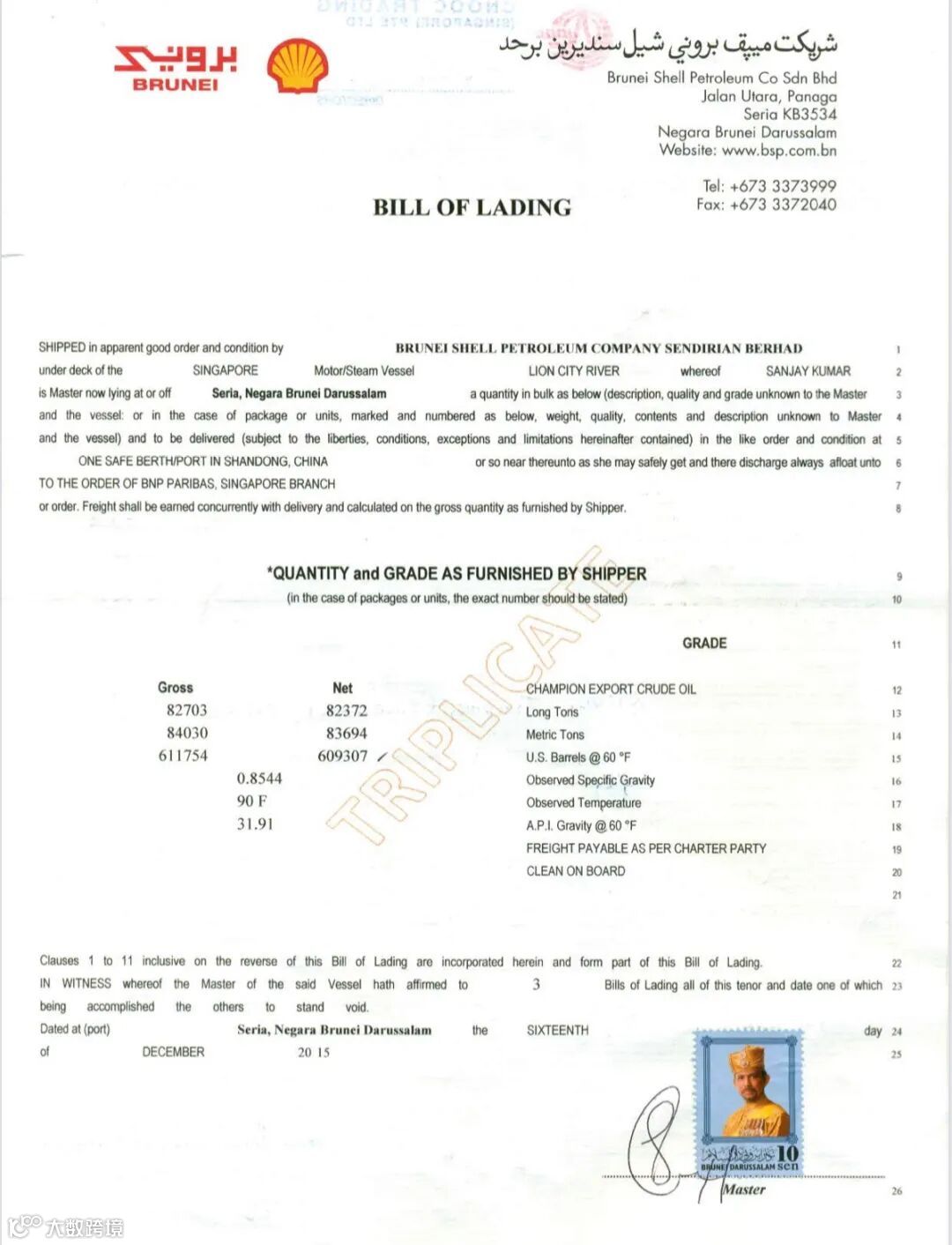 其实英语bill这个词跟单字很像,有多种意思。辞书上说其本意指书面记述written statement,词汇源自法语的bille、拉丁语的billa或bulla,意指正式文档formal document、正式请求或指控formal plea or charge,从十五世纪初开始具有了“书面记述一方卖售于另一方之实物或服务之清单written statement detailing articles sold or services rendered by one person to another”的意思。望文生义,词组bill of lading应该是对已装船货物具体特征的记述,故此在谈提单的三种功能时,已装船付运的功能列在首位。