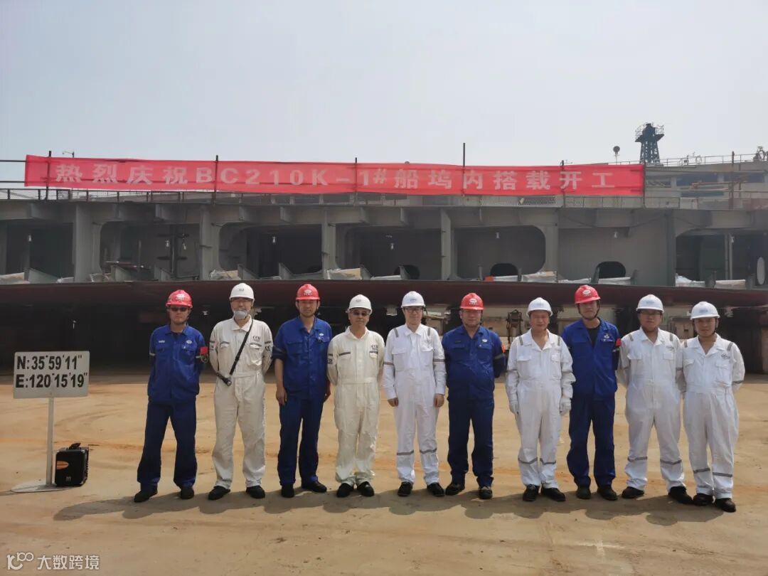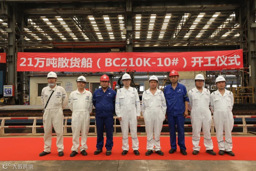 北船重工为中远海运散货运输有限公司建造的4艘21万吨散货船中的第4艘顺利开工,第一艘在造船1号坞内进坞铺底。