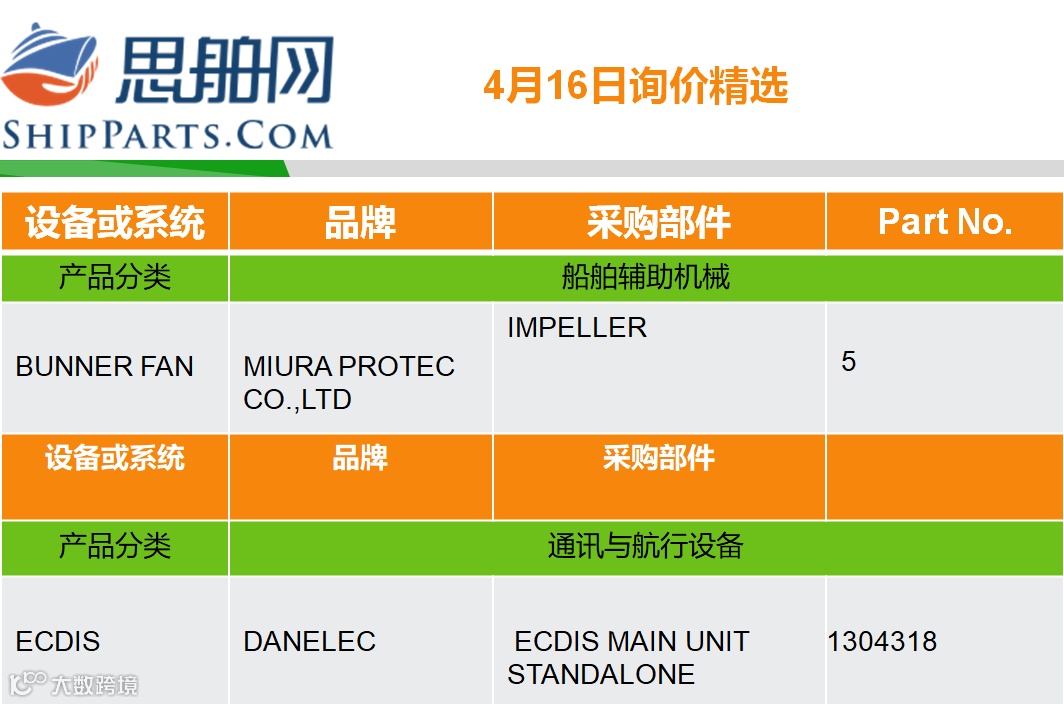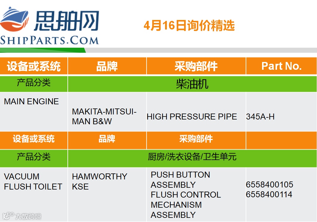 04-16询单精选 |登录ShipParts.com了解更多 思舶