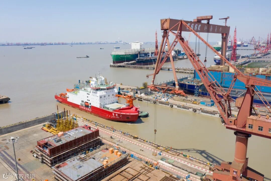 4月28日中午,“雪龙2”号科学考察破冰船先行驶入中国船舶集团旗下江南造船四号船坞,将开展为期45天的保养维修工作。