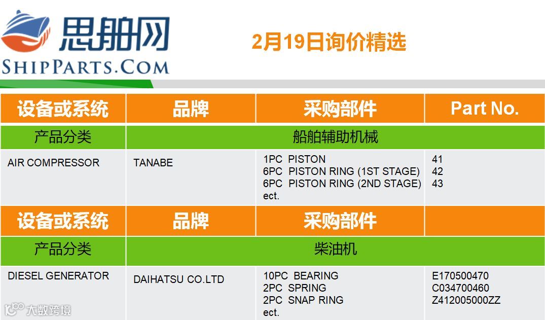 思舶网(ShipParts.com)成立于2015年,是领先的电子商务平台,用于采购船用设备,零件和服务。总部位于上海,为73个国家和地区超过17000家设备供应商以及1800多家采购商提供服务。与传统采购模式相比,思舶网通过先进的IT技术,减少传统采购模式下所需成本,时间,及物流费用。
