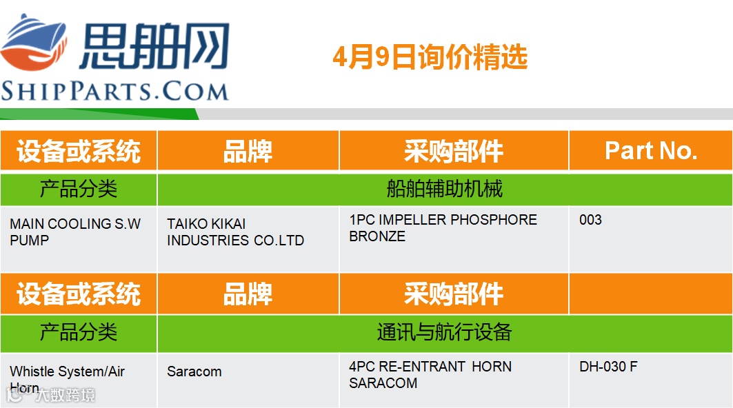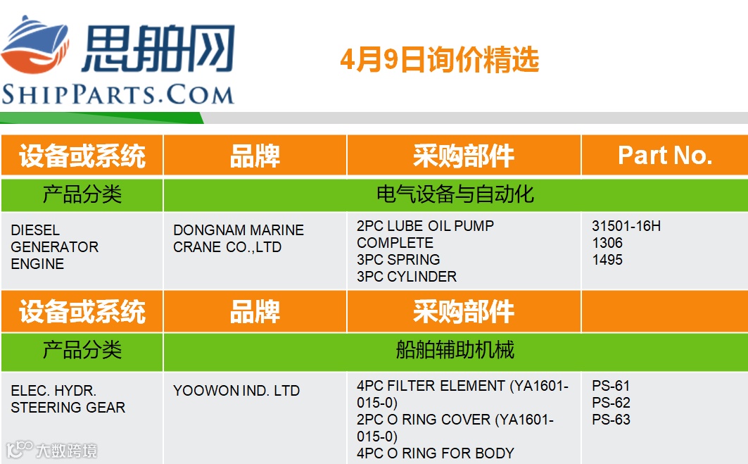 04-09询单精选 |登录ShipParts.com了解更多 思舶