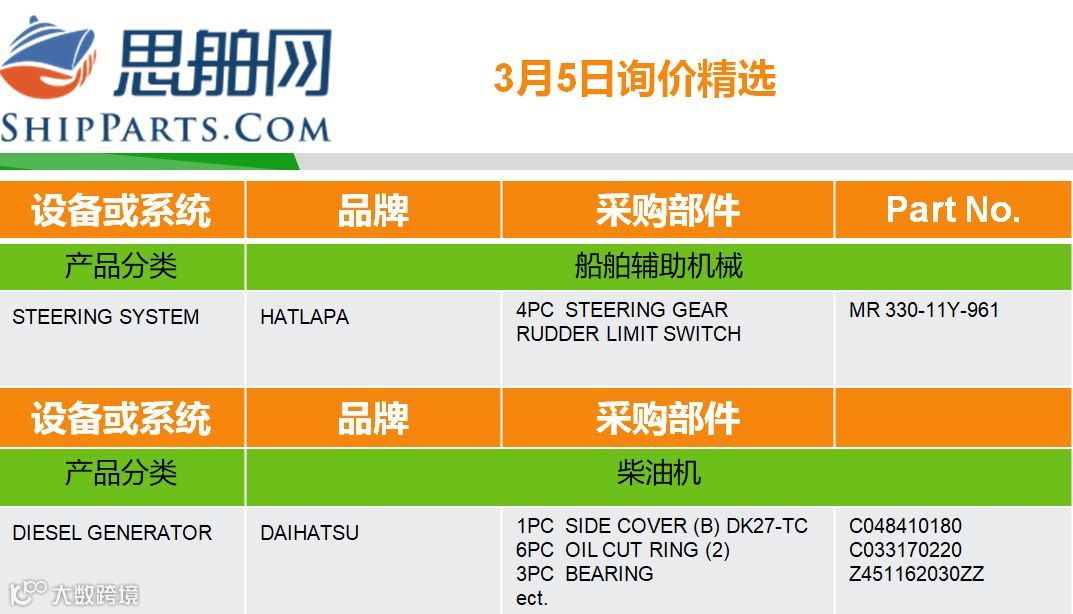 03-05询单精选 |登录ShipParts.com了解更多 思舶