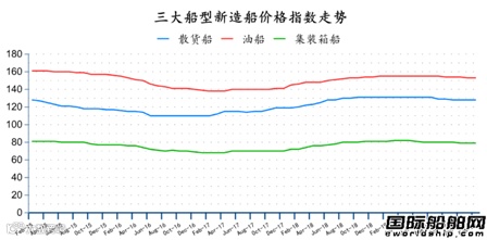 克拉克森最新数据统计显示,2月份散货船、油船和集装箱船新船价格指数分别为128点、153点和79点。