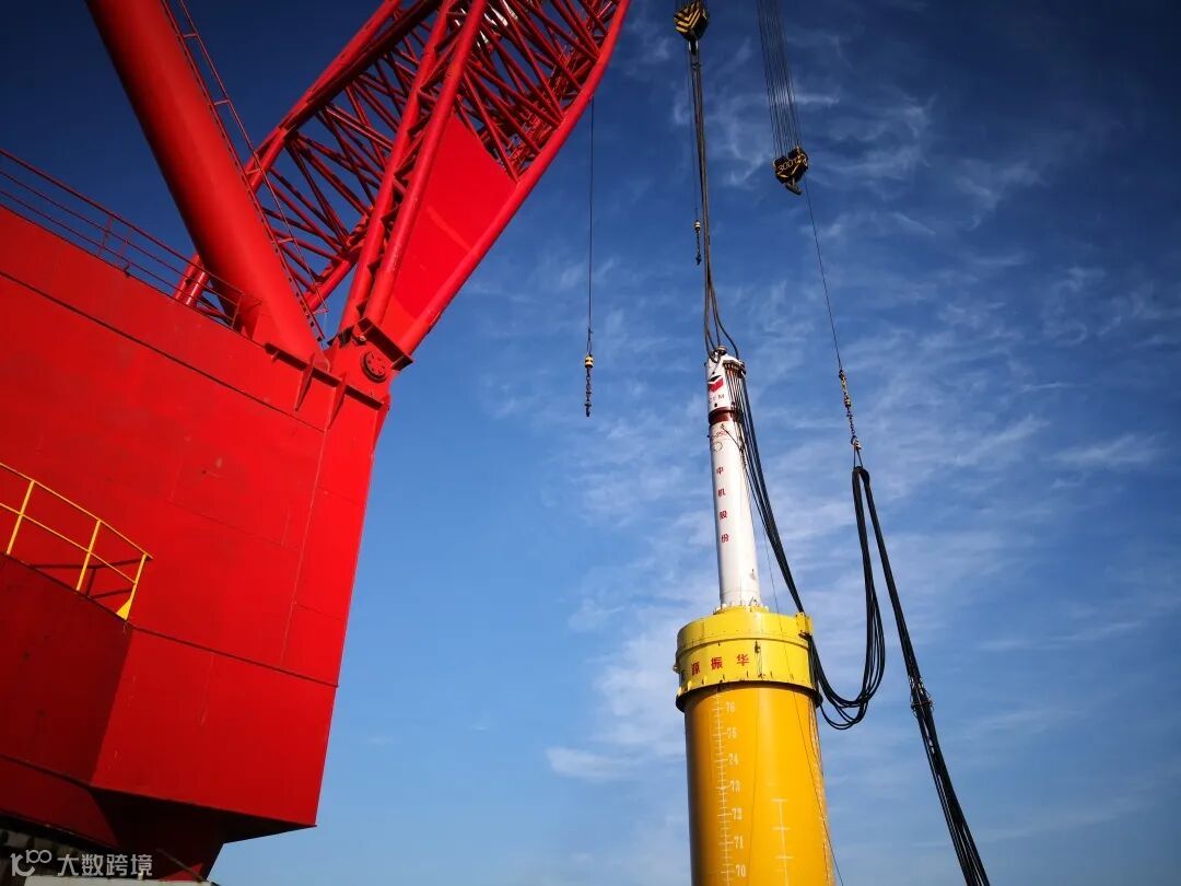 开发了目前为止,世界最大起重能力 2000 吨的自升式风电安装平台。通过发明大型回转轴建造技术及智能型升降系统等关键部件,实现施工新体系中的“吊”工艺,解决了嵌岩过程中基础重、位移大而无法满足其水平度要求的难题。
